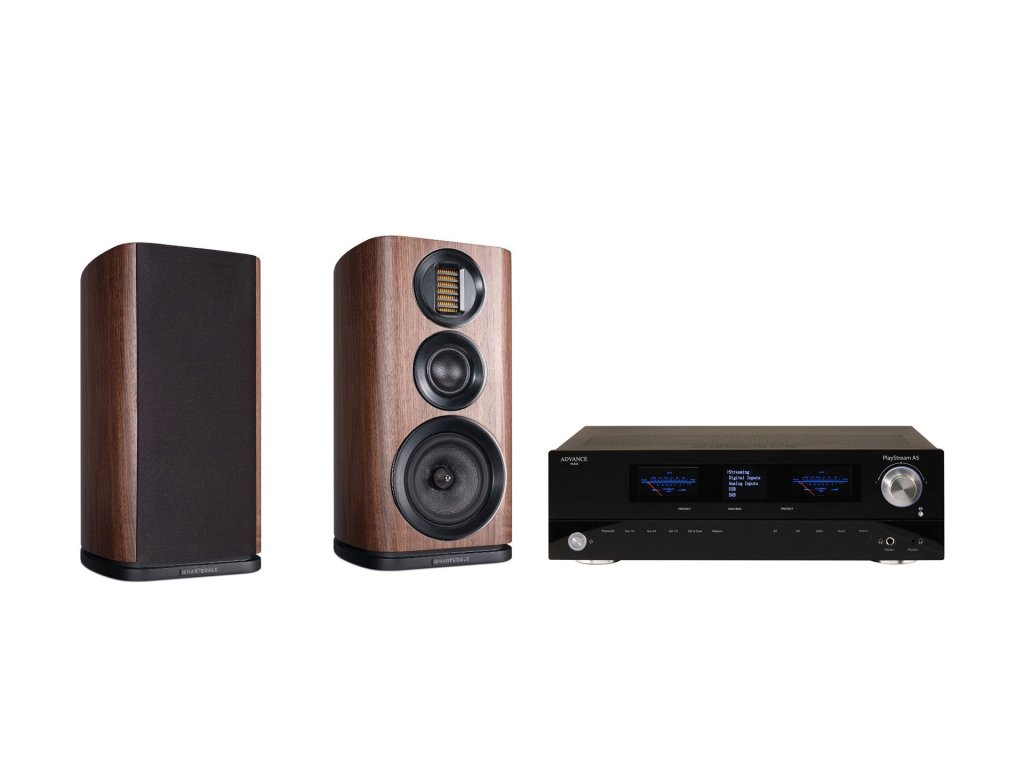 Akciový cenovo zvýhodnený set zložený z mohutnejších regálových reproduktorov Wharfedale EVO 4.2 a veľmi kvalitného zosilňovača Playstream A5 značky Advance Acoustic.