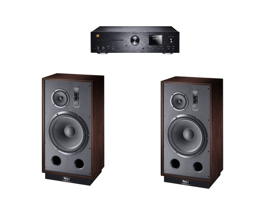 Táto zostava kombinuje špičkovo vybavený prístroj Magnat MC-400 a stĺpové retro reprosústavy Transpuls 1500. MC-400 má všetko, čo môžete požadovať – tunery FM/DAB+, CD mechaniku, Phono MM predzosilňovač, HDMI vstup s ARC, Bluetooth, streamer s možnosťou multiroomu.