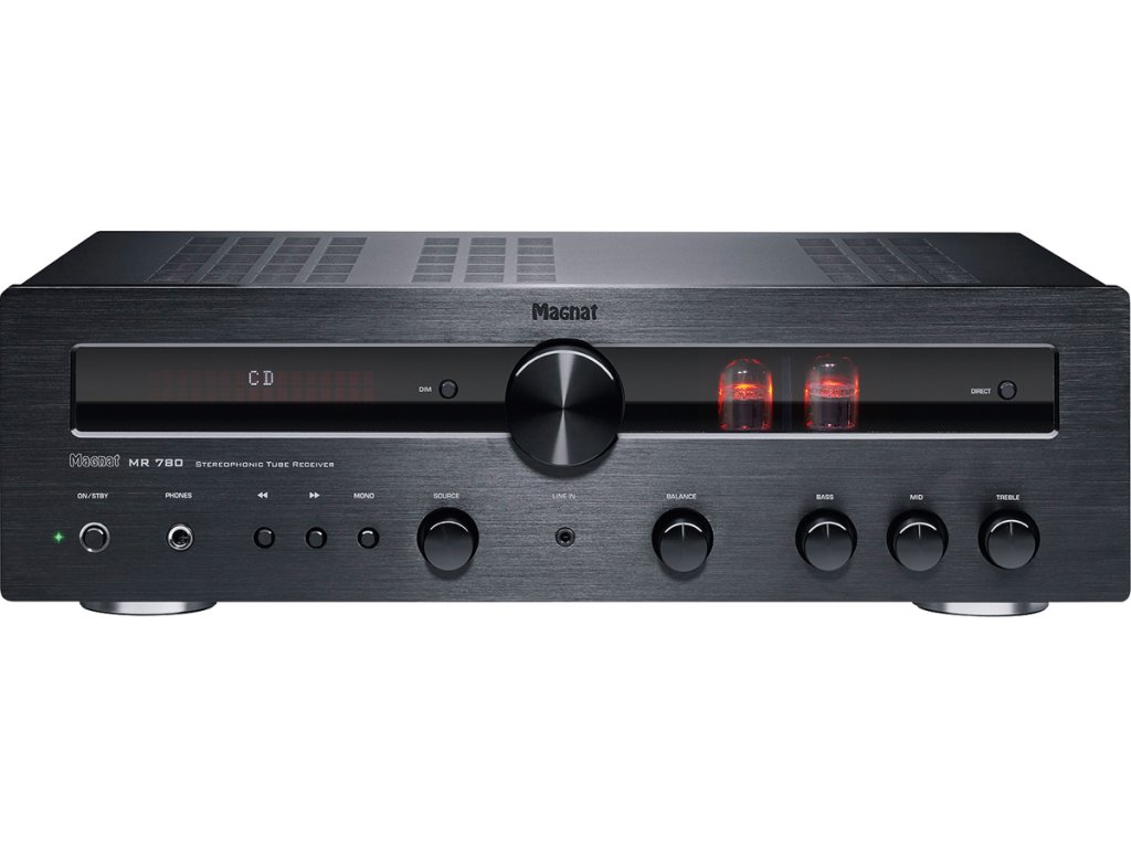 High-endový hybridný receiver Magnat MR 780 s elektrónkovým predzosilňovačom, vysoko kvalitným DAB+/FM tunerom a Bluetooth. Stereo receiver MR 780 sleduje jedinečný hybridný koncept značky Magnat: v predzosilňovacom stupni pracujú dve lampy ECC 81, ktoré poskytujú celému systému teplé, audiofilné zvuky, ktorý je stále viac obľúbený medzi hifi fanúšikmi. Výkonná, diskrétne navrhnutá tranzistorová časť ponúka dostatočný výkon 2x 100 wattov RMS výkonu na kanál pri 4 ohmoch. O prevod digitálneho signálu sa potom stará vysoko kvalitný Wolfson D/A prevodník s podporou signálu až do 192 kHz a 24 bitov. Široká škála pripojení ponúka maximálnu flexibilitu. Receiver ponúka bohatú flexibilitu pripojenia, v ktorej nechýba 5 analógových vstupov alebo 2 optické a 2 koaxiálne digitálne vstupy.