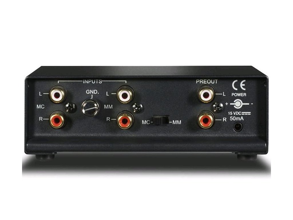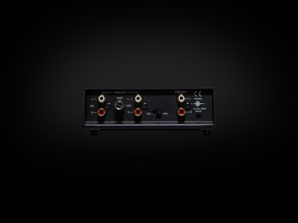 Predzosilňovač pre MM/MC prenosku, oddelený 24V zdroj. MC vstup: impedancia 100 ohmov + 180 pF, zisk na 1 kHz 60dB, odstup signál/šum 78dB, menovité skreslenie <0,03%. MM vstup: impedancia 47 kohmov + 200 pF, zisk na 1 kHz 35dB, odstup signál/šum 80dB, menovité skreslenie <0,03%. Rozmery bez zdroja 135 x 49 x 72 mm.