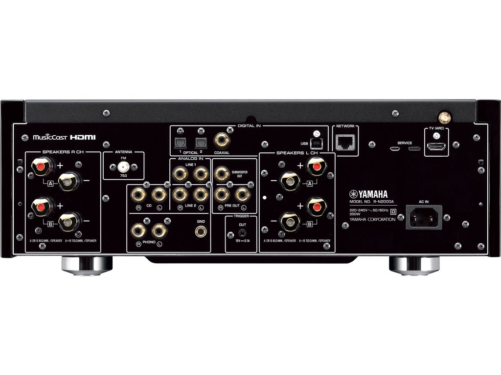 Model R-N2000A je vybavený originálnym sieťovým systémom MusicCast spoločnosti Yamaha. Okrem toho je kompatibilný s radom streamovacích služieb, ako sú Amazon Music HD a Spotify, a umožňuje vám plne si vychutnať výnimočne kvalitný zvuk, ktorý je jedinečný pre dnešné zdroje zvuku s vysokým rozlíšením a bezstratový, s úplnou vernosťou. Môžete ho tiež použiť na streamovanie Apple Music pomocou Airplay 2. A systém MusicCast vám umožní jednoducho počúvať hudbu kdekoľvek vo vašej domácnosti prepojením rôznych zariadení MusicCast pomocou jedinej aplikácie vo vašom inteligentnom zariadení.